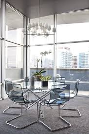 Beautiful Rectangle Glass Dining Table With Chrome Polished Metal Frame And Four Translucent Acrylic Dining Ikea Dining Dining Room Small Acrylic Dining Chairs