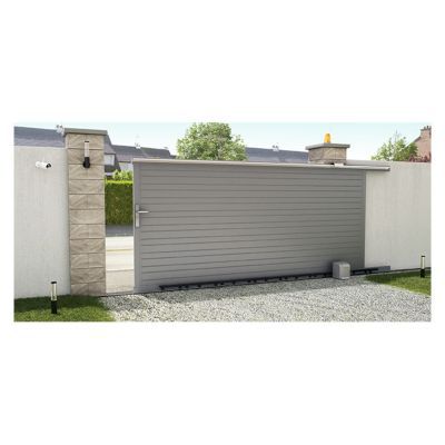Portail En Aluminium Coulissant Motorise Blade Gris 350 Cm Castorama
