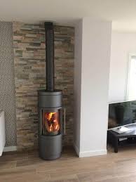Poele Hase Sila Gris Et Mur En Parement Pierre Naturelle Poele A Bois Poele A Bois En Coin Mur En Pierre Salon